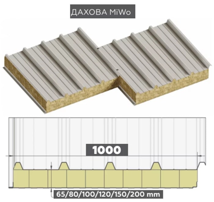 • Ширина сэндвич панелей на крышу: 1000мм.